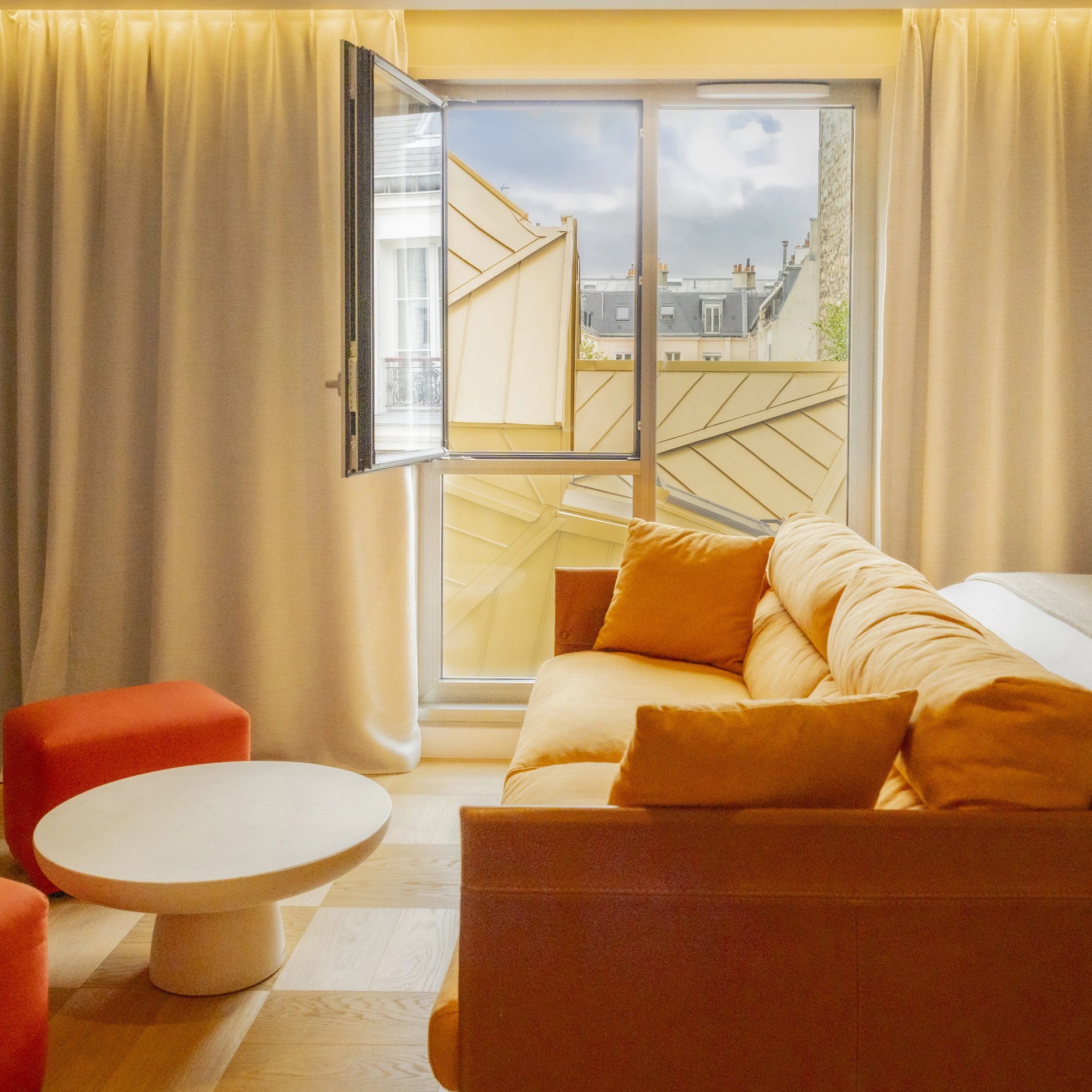 - Chambre Deluxe Terrasse : dotée d'une terrasse privée avec vue sur les toits de Paris, cette chambre est l'hôtel avec balcon par excellence, une option de choix pour une expérience parisienne inoubliable, entre lumière et calme.